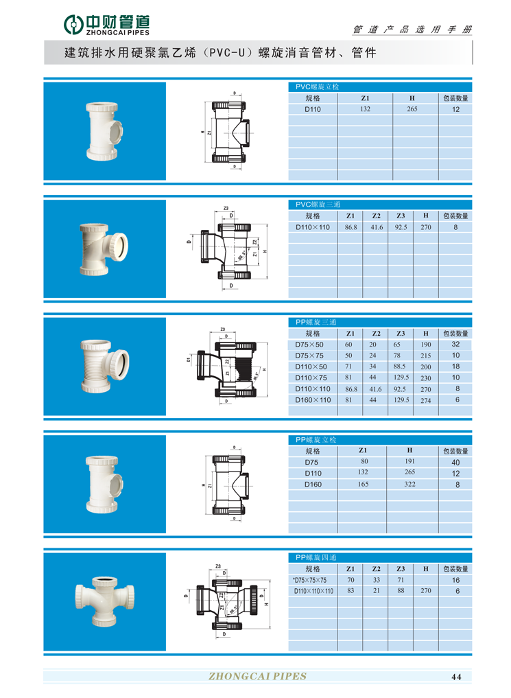 中财牌建筑排水用硬聚氯乙烯(PVC-U)螺旋消音管材、管件系列-01